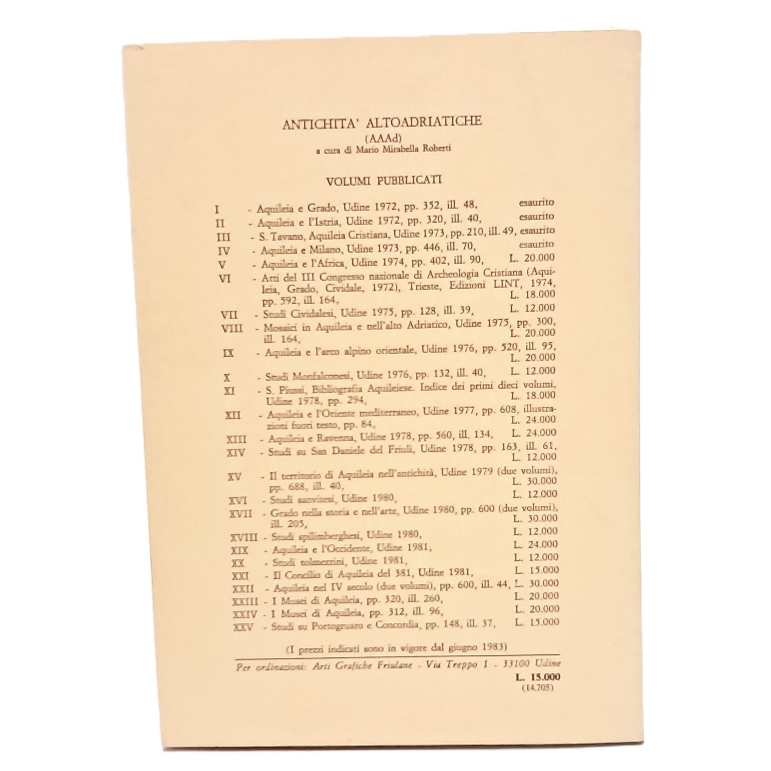 PRIMA EDIZIONE, serie Antichità altoadriatiche volume XXV con prefazione di Mario Mirabella Roberti