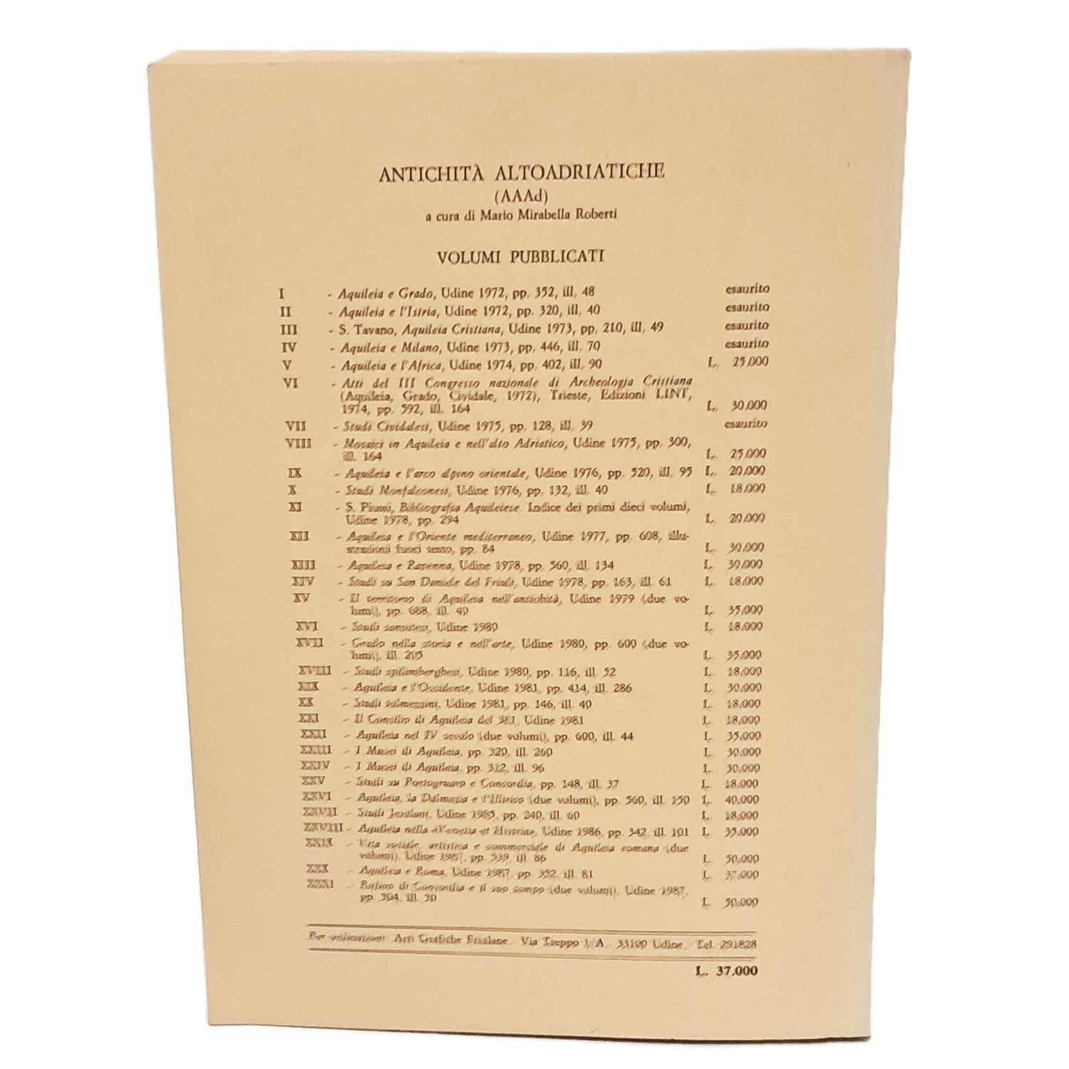 PRIMA EDIZIONE, atti della XVII settimana di studi aquileiesi del 24-29 aprile 1986; Antichità altoadriatiche volume XXX della serie.