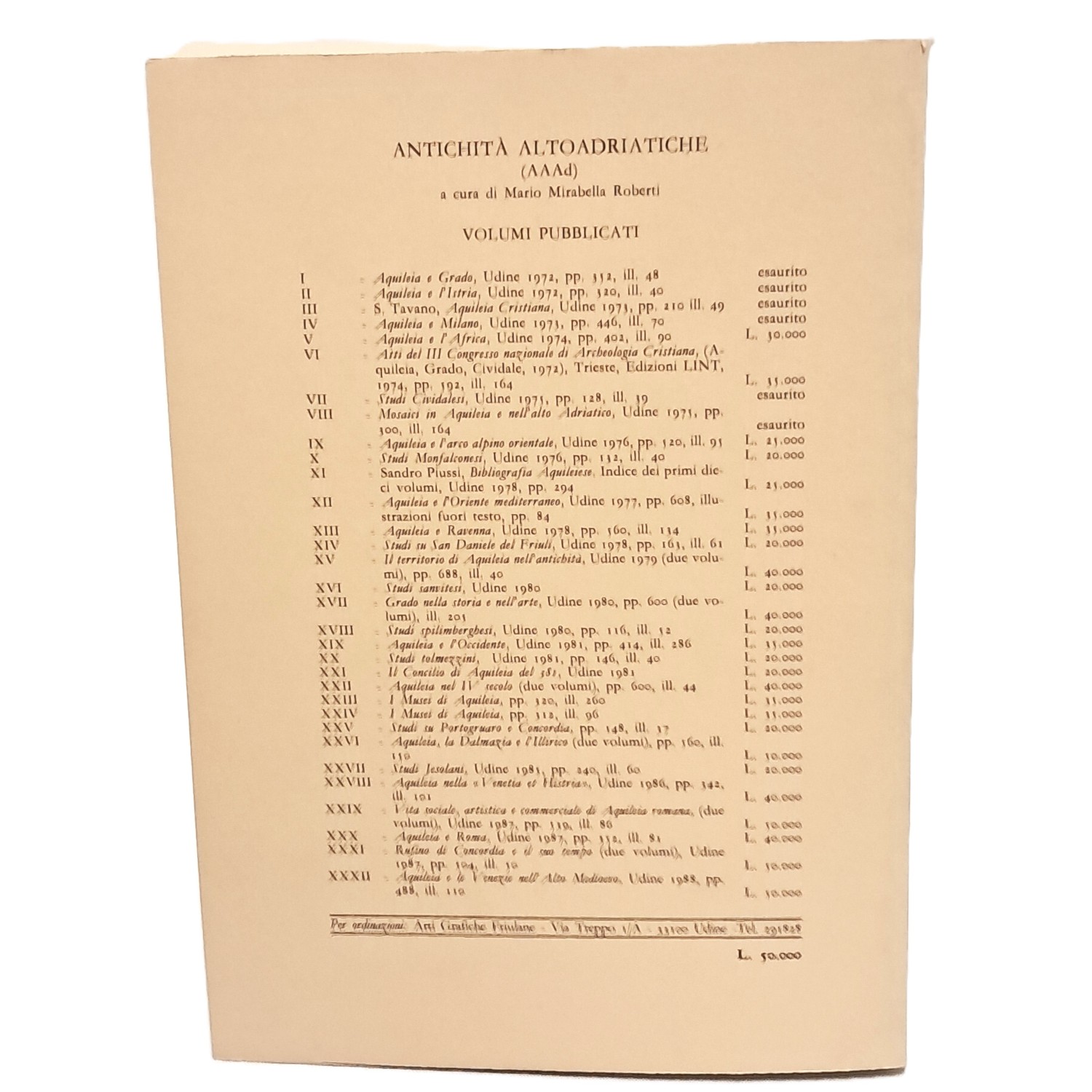PRIMA EDIZIONE atti della XVIII settimana di studi aquileiese tenutasi dal 30 aprile al 5 maggio 1987; Antichità altoadriatiche volume XXXII della serie.
