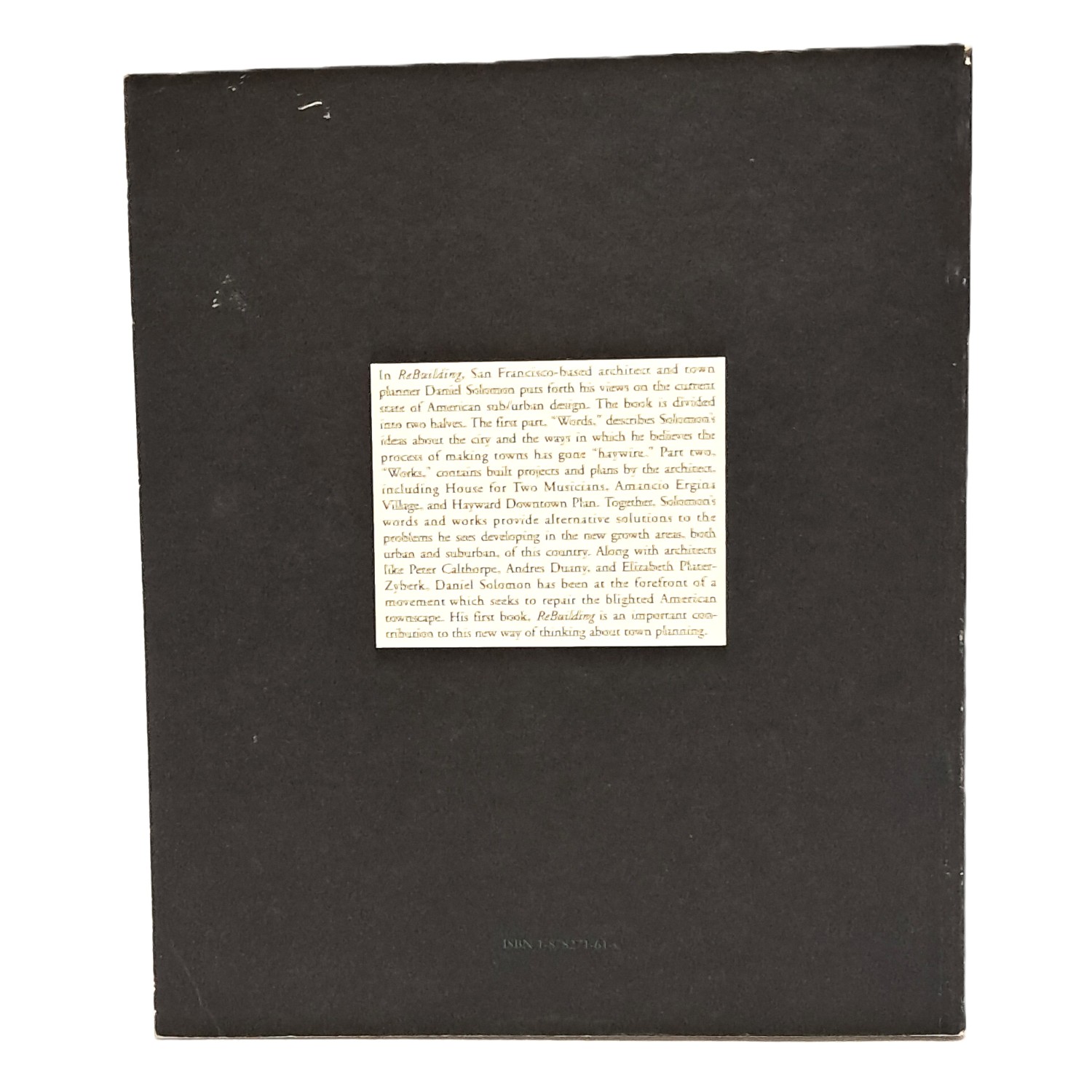 Saggio in cui si analizzano le realizzazioni di Daniel Solomon; nella prima parte vengono descritte le sue idee riguardo la città di San Francisco (Words); nella seconda vi sono gli edifici e i prospetti dell'architetto (Works).
