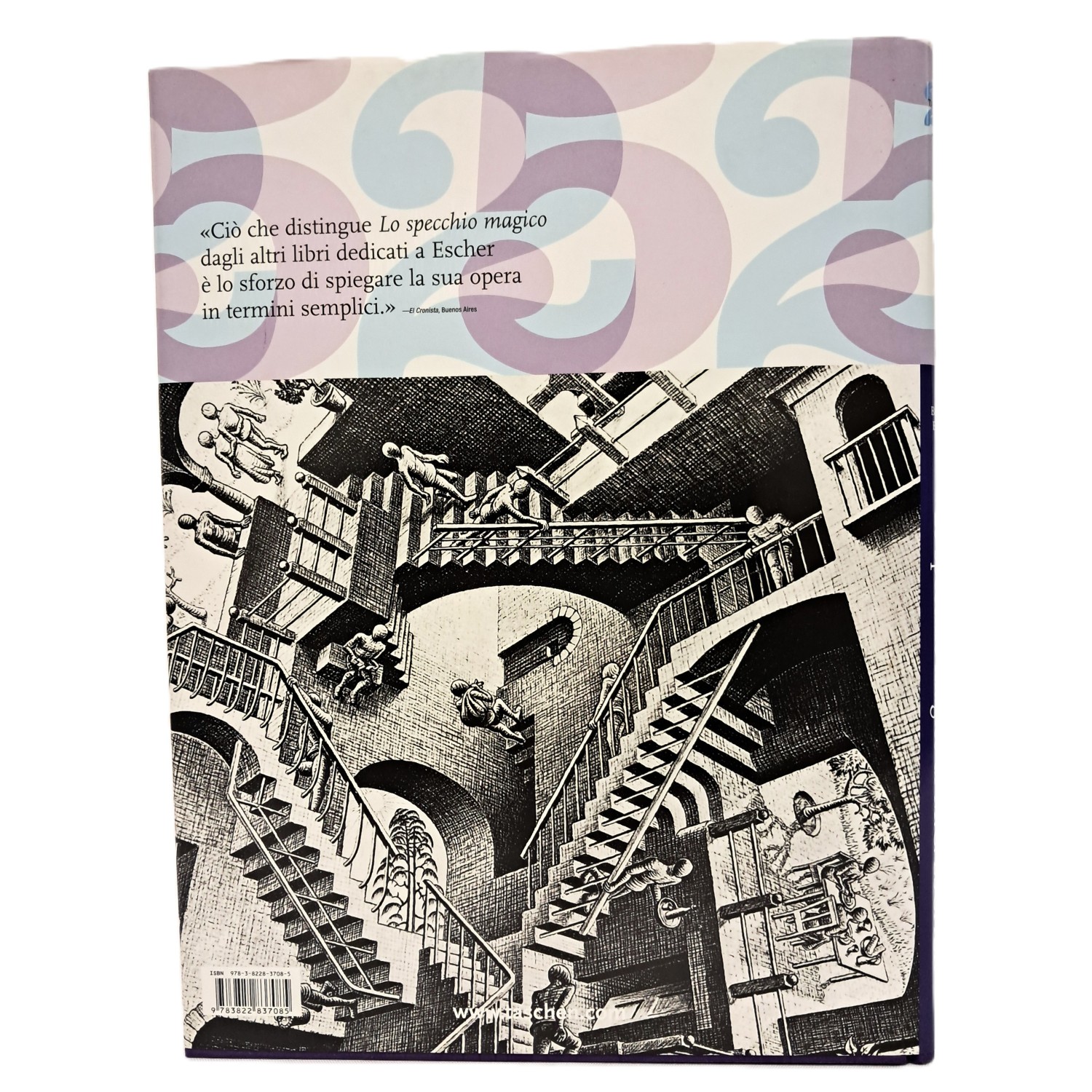 “Una volta una donna mi ha telefonato e mi ha detto: ‘Signor Escher, vado assolutamente pazza per i suoi lavori. La sua stampa Reptiles è un’illustrazione impressionante della reincarnazione’. Le ho risposto: ‘Signora, se è questo che ci vede, che sia così’”. Un commento astuto e seducente da parte del celebre artista grafico olandese Maurits Cornelis Escher (1898–1972): le complesse ambiguità delle sue opere sono certo ben lontane da ogni interpretazione univoca o affrettata. Escher era un maestro della terza dimensione molto prima che le immagini in 3D generate al computer arrivassero a elettrizzare il pubblico. La sua litografia Magic Mirror risale al 1946. Nello scegliere questo titolo per il libro, il matematico Bruno Ernst ha voluto sottolineare la magia che inevitabilmente pervade chiunque osservi le opere di Escher. Per un anno intero, ogni settimana Ernst ha fatto visita all’artista, discutendo a lungo con lui della sua opera. Dalle loro conversazioni nacque un’amicizia che permise a Ernst di avere accesso alla vita e al mondo concettuale di Escher da un punto di vista particolarmente intimo. Il suo resoconto è stato meticolosamente rivisto e corretto dall’artista stesso. L’opera di Escher rifiuta ogni classificazione. Criteri scientifici, psicologici o estetici da soli non le rendono giustizia. Le domande restano. Perché ha creato queste immagini? Come le ha costruite? Che studi preliminari sono serviti per arrivare alla versione finale? E come si relazionano una all’altra le diverse immagini create da Escher? Questo libro con dati biografici, 250 illustrazioni, e le spiegazioni dei problemi matematici, offre le risposte a questi e molti altri interrogativi.