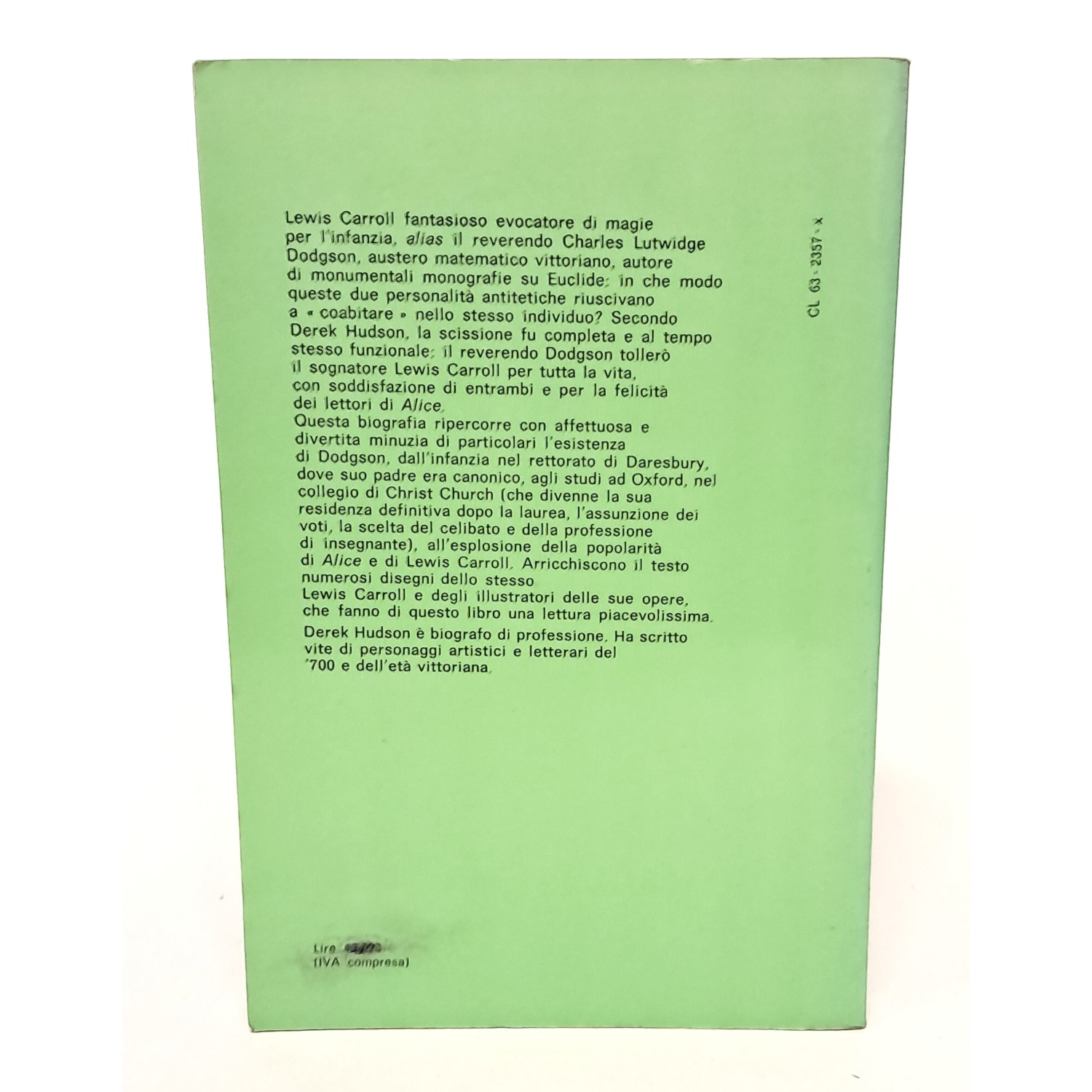 Lewis Carroll (1832-1898) è stato uno scrittore e matematico, noto soprattutto per " Alice nel paese delle meraviglie" (1865) e il suo seguito " Attraverso lo specchio" (1871). Questo studio del 1958 di Derek Hudson esplora i primi anni di vita di Carroll, le origini dei suoi libri su Alice, i suoi ultimi versi e il racconto in due volumi sulle fate Sylvie e Bruno. Un volume della collana "Scrittori e le loro opere", che attinge al pensiero più recente degli studi anglosassoni per presentare autori e i loro contesti. Ogni volume include materiale biografico, un'analisi della critica recente, una bibliografia e una rivisitazione di un'opera importante dello scrittore.