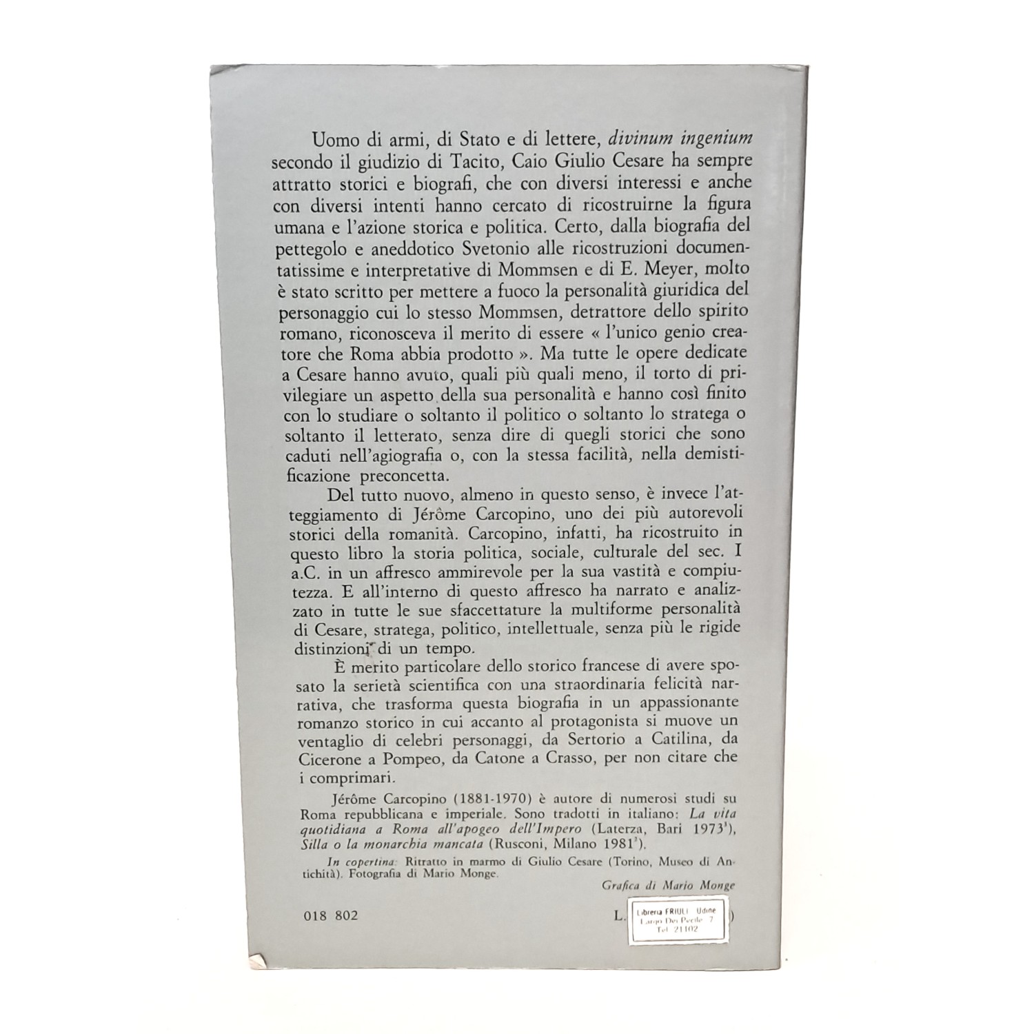 Lo storico francese in questa biografia ha sposato la serietà scientifica con una straordinaria felicità narrativa, che trasforma questa biografia in un appassionante romanzo storico in cui accanto al protagonista si muove un ventaglio di celebri personaggi, da Sertorio a Catilina, da Cicerone a Pompeo, per non citare che i comprimari.