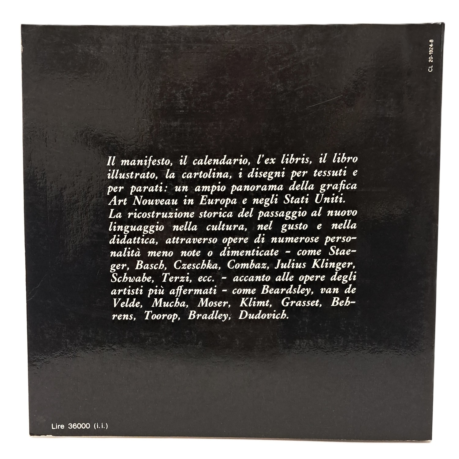 Il manifesto, il calendario, l'ex libris, il libro illustrato, la cartolina, i disegni per tessuti e per parati: un ampio panorama della grafica Art Nouveau in Europa e negli Stati Uniti. La ricostruzione storica del passaggio al nuovo linguaggio nella cultura, nel gusto e nella didattica, attraverso opere di numerose personalità meno note o dimenticate - come Staeger, Batsch, Czeschka, Combaz, Julius Klinger, Schwabe, Terzi ecc - accanto alle opere degli artisti più affermati - come Beardsley, van de Velde, Mucha, Moser, Klimt, Grasset, Behrens, Toorop, Bradley, Dudovich.