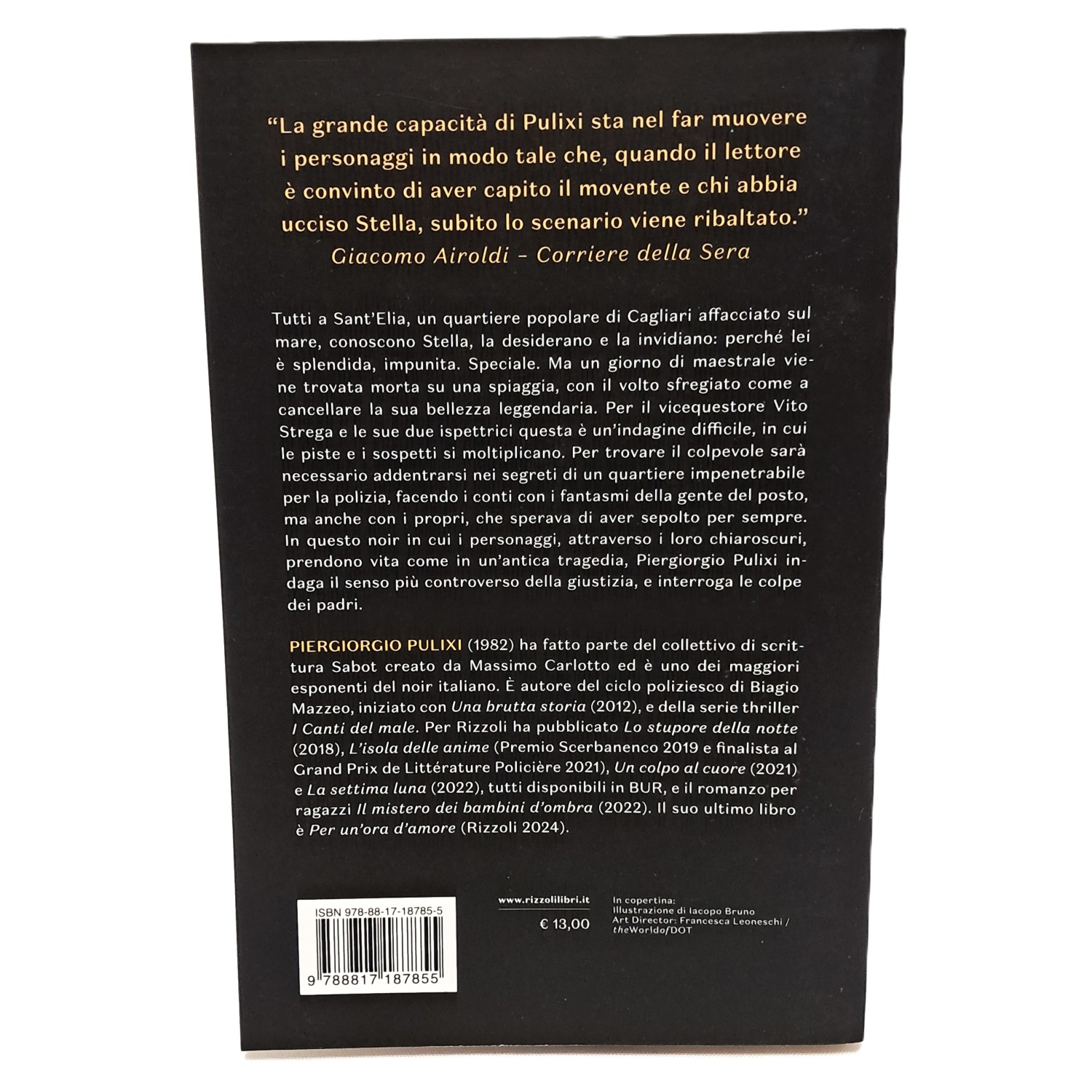 Tutti a Sant’Elia, un quartiere popolare di Cagliari affacciato sul mare, conoscono Stella, la desiderano e la invidiano: perché lei è splendida, impunita. Speciale. Ma un giorno di maestrale viene trovata morta su una spiaggia, con il volto sfregiato come a cancellare la sua bellezza leggendaria. Per il vicequestore Vito Strega e le sue due ispettrici questa è un’indagine difficile, in cui le piste e i sospetti si moltiplicano. Per trovare il colpevole sarà necessario addentrarsi nei segreti di un quartiere impenetrabile per la polizia, facendo i conti con i fantasmi della gente del posto, ma anche con i propri, che sperava di aver sepolto per sempre. In questo noir in cui i personaggi, attraverso i loro chiaroscuri, prendono vita come in un’antica tragedia, Piergiorgio Pulixi indaga il senso più controverso della giustizia, e interroga le colpe dei padri.