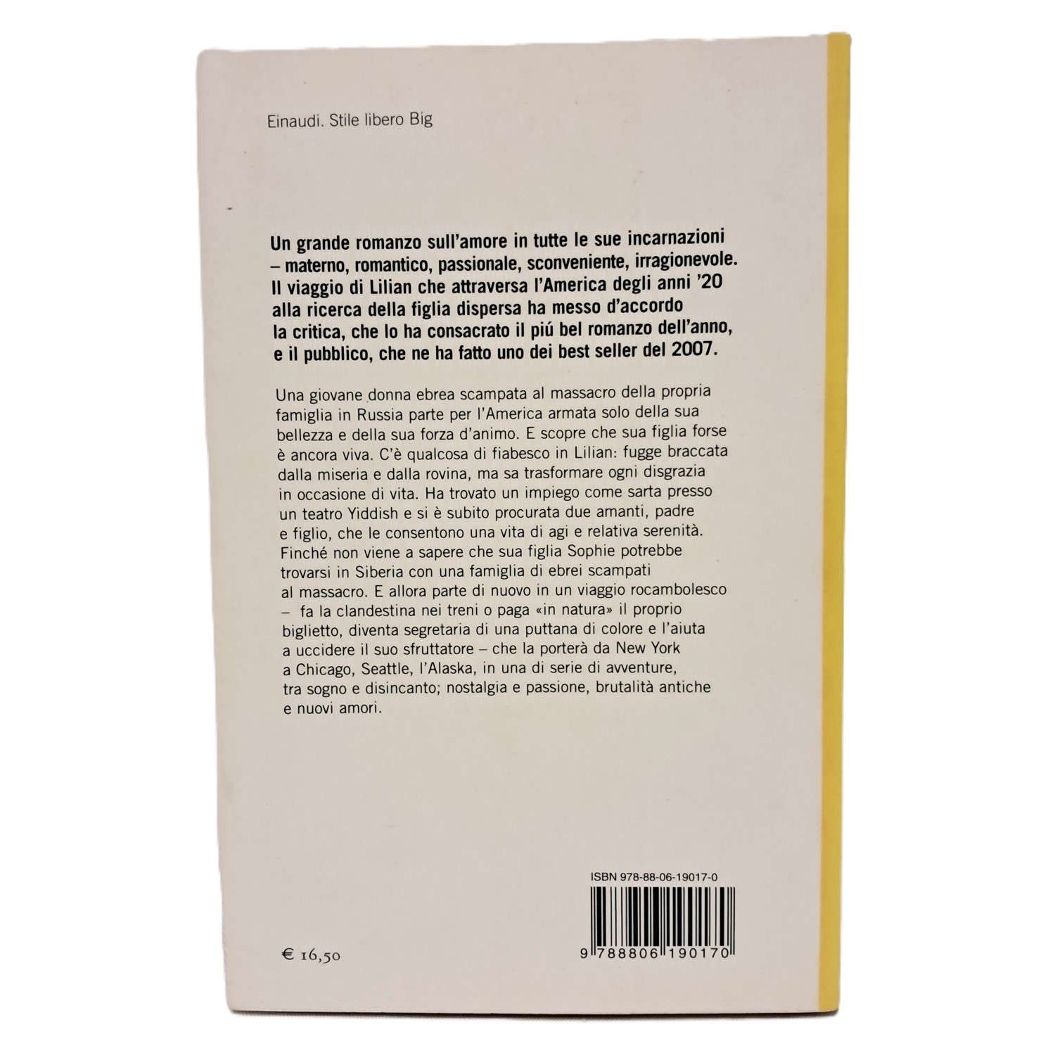 Una giovane donna ebrea scampata al massacro della propria famiglia in Russia, fugge in America armata solo della sua bellezza e della sua forza d'animo. E scopre che sua figlia forse è ancora viva. Un grande romanzo sull'amore in tutte le sue incarnazioni - materno, romantico, passionale, platonico, sconveniente, irragionevole. Lilian fugge braccata dalla miseria e dalla rovina. È bella, impudente e temeraria: feroce e magica come l'America stessa che l'ha accolta. Ha trovato un impiego come sarta presso un teatro Yiddish e si è subito procurata due amanti, padre e figlio, che le consentono una vita di agi. Finché non viene a sapere che sua figlia Sophie potrebbe trovarsi in Siberia con una famiglia di ebrei scampati al massacro. E allora parte di nuovo in un viaggio rocambolesco - fa la clandestina nei treni o paga "in natura" il proprio biglietto, diventa segretaria di una puttana di colore e l'aiuta a uccidere il suo sfruttatore - che la porterà da New York all'Alaska, in una di serie di avventure, tra sogno e disincanto, nostalgia e passione, brutalità antiche e nuovi amori.