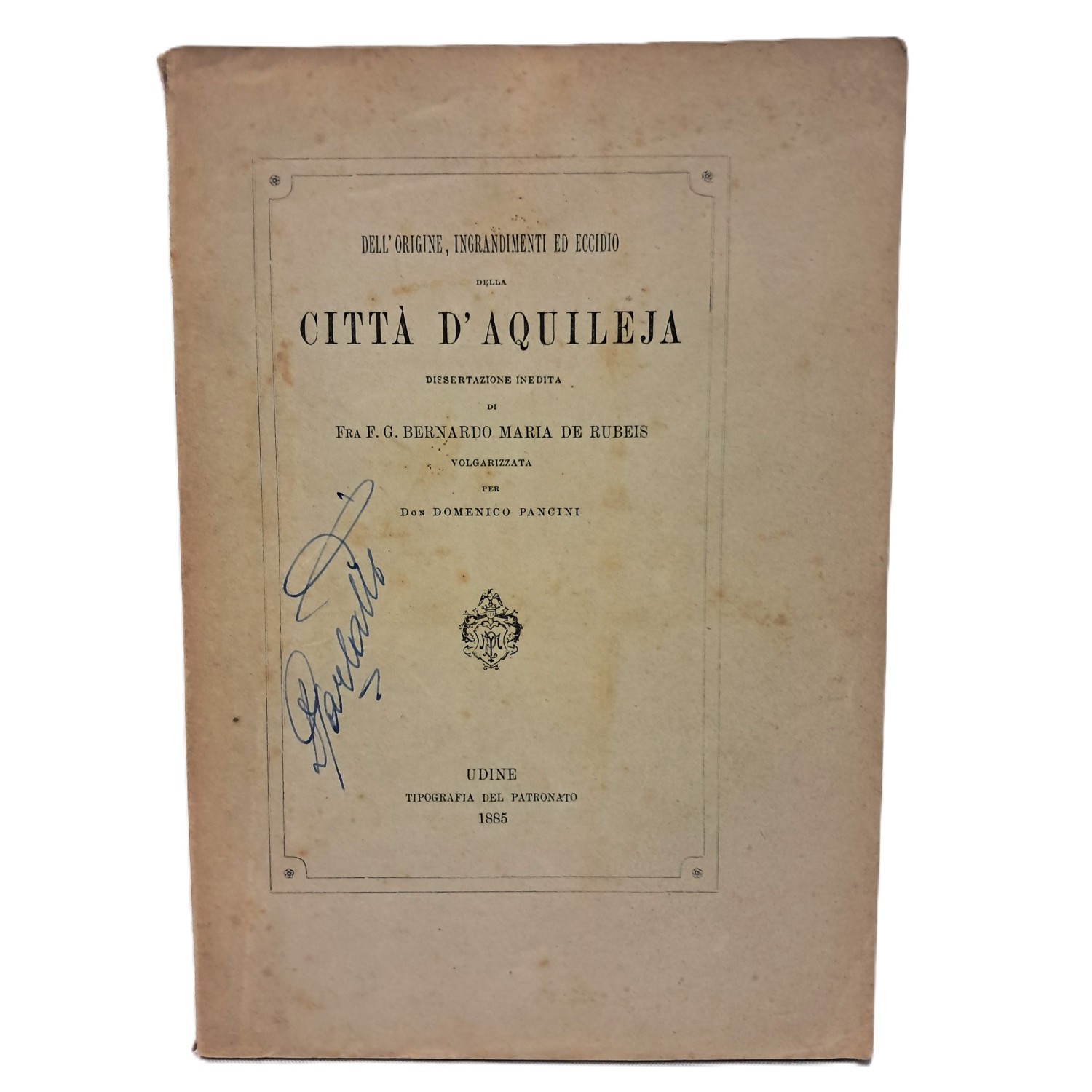 Opuscolo edito in occasione della consacrazione del locale parroco della chiesa di Aquileia ; con note storiche curate dal De Rubeis.