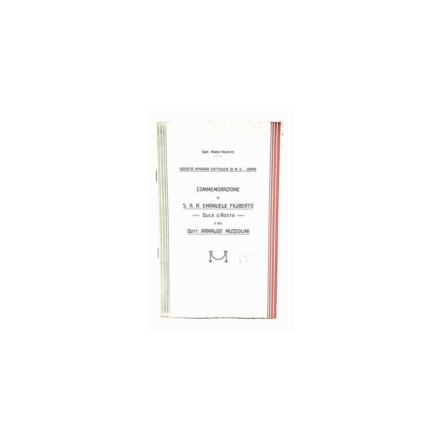 Volpato MarioPRIMA ED UNICA EDIZIONE, opuscolo curato dalla società cattolica di mutuo soccorso di Udine