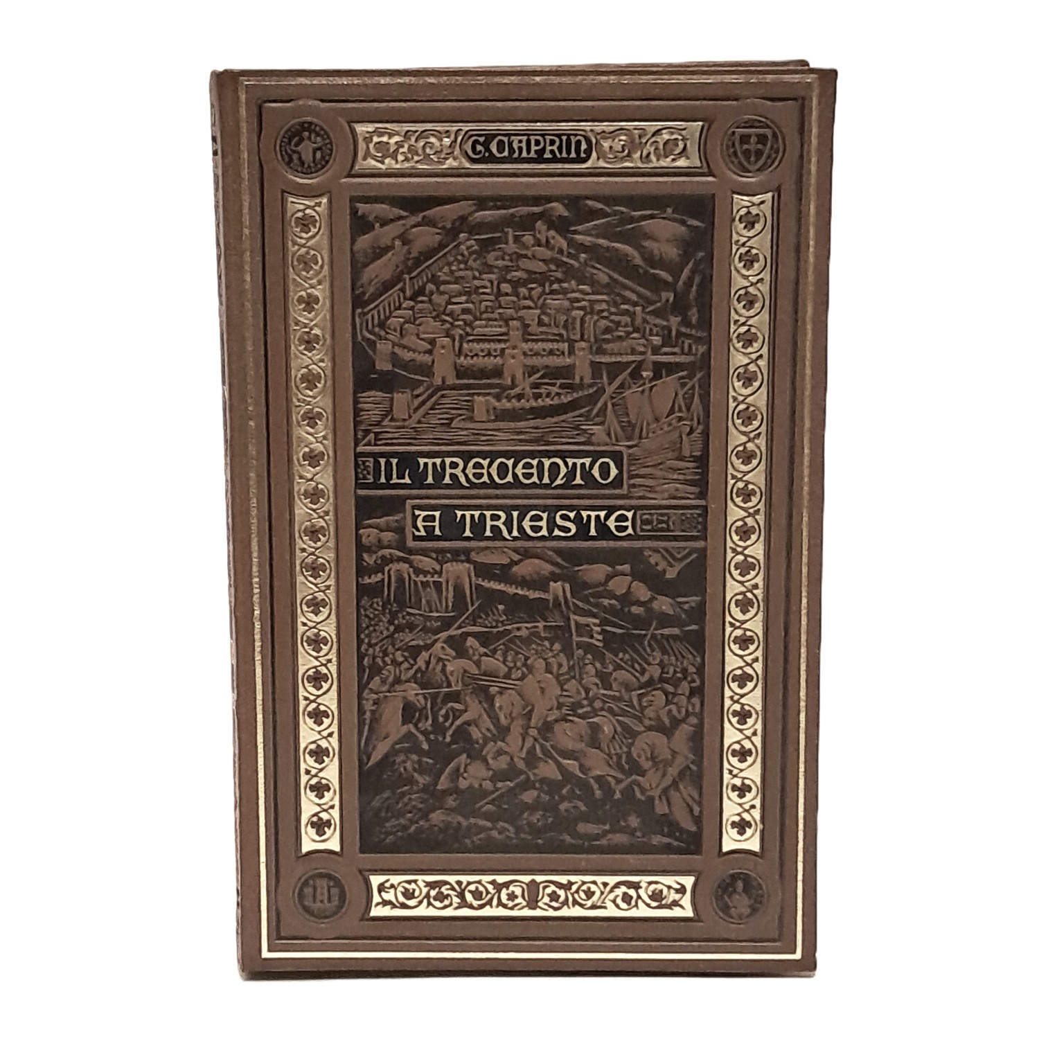 Saggio storico in cui il Caprin sposta l'attenzione rispetto alle sue opere precedenti, focalizzate sugli aspetti storico-documentari, verso la comprensione delle istituzioni politiche e civili, verso la ricerca dello spirito di libertà commerciale dei triestini nel trecento.