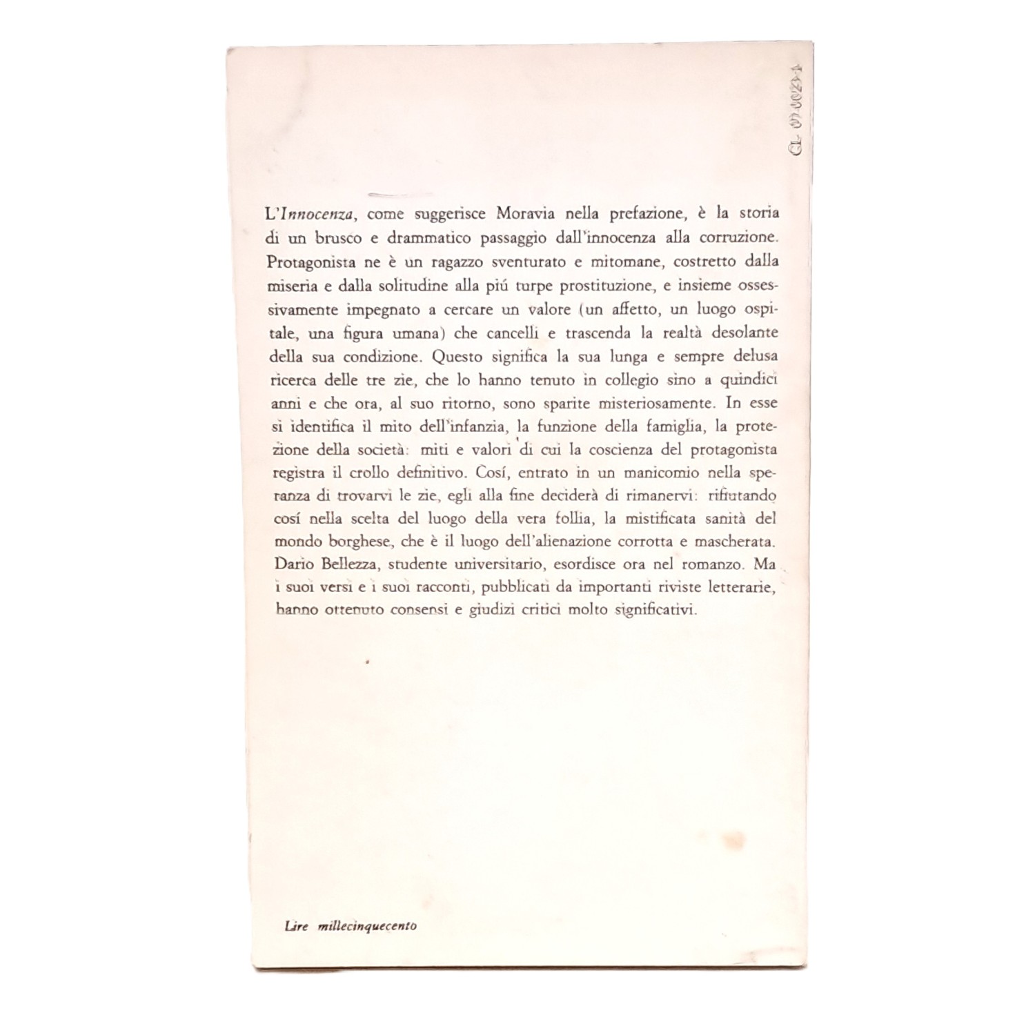 L'Innocenza, come suggerisce Moravia nella prefazione, è la storia di un brusco e drammatico passaggio dall'innocenza alla corruzione. Protagonista ne è un ragazzo sventurato e mitomane, costretto dalla miseria e dalla solitudine alla più turpe prostituzione e insieme ossessivamente impegnato a cercare un valore (un affetto, un luogo ospitale e una figura umana) che cancelli e trascenda la realtà desolante della sua condizione.
