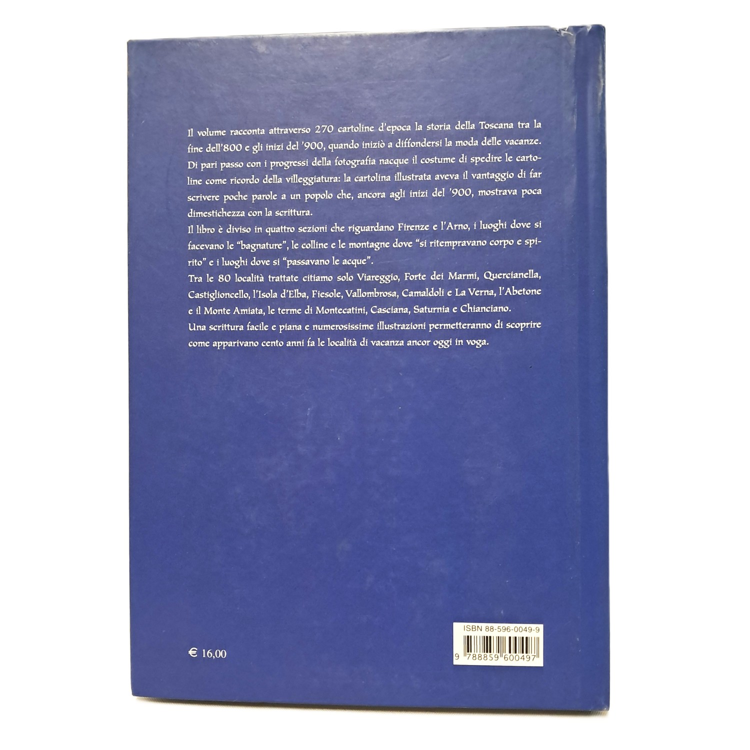 Il volume racconta attraverso 270 cartoline d'epoca la storia della Toscana tra la fine dell'800 e gli inizi del '900, quando iniziò a diffondersi la moda della vacanze. Il libro è diviso in quattro sezioni che riguardano Firenze e l'Arno, i luoghi dove si facevano le bagnature, le colline e le montagne dove si ritempravano corpo e spirito e i luoghi dove si passavano le acque.