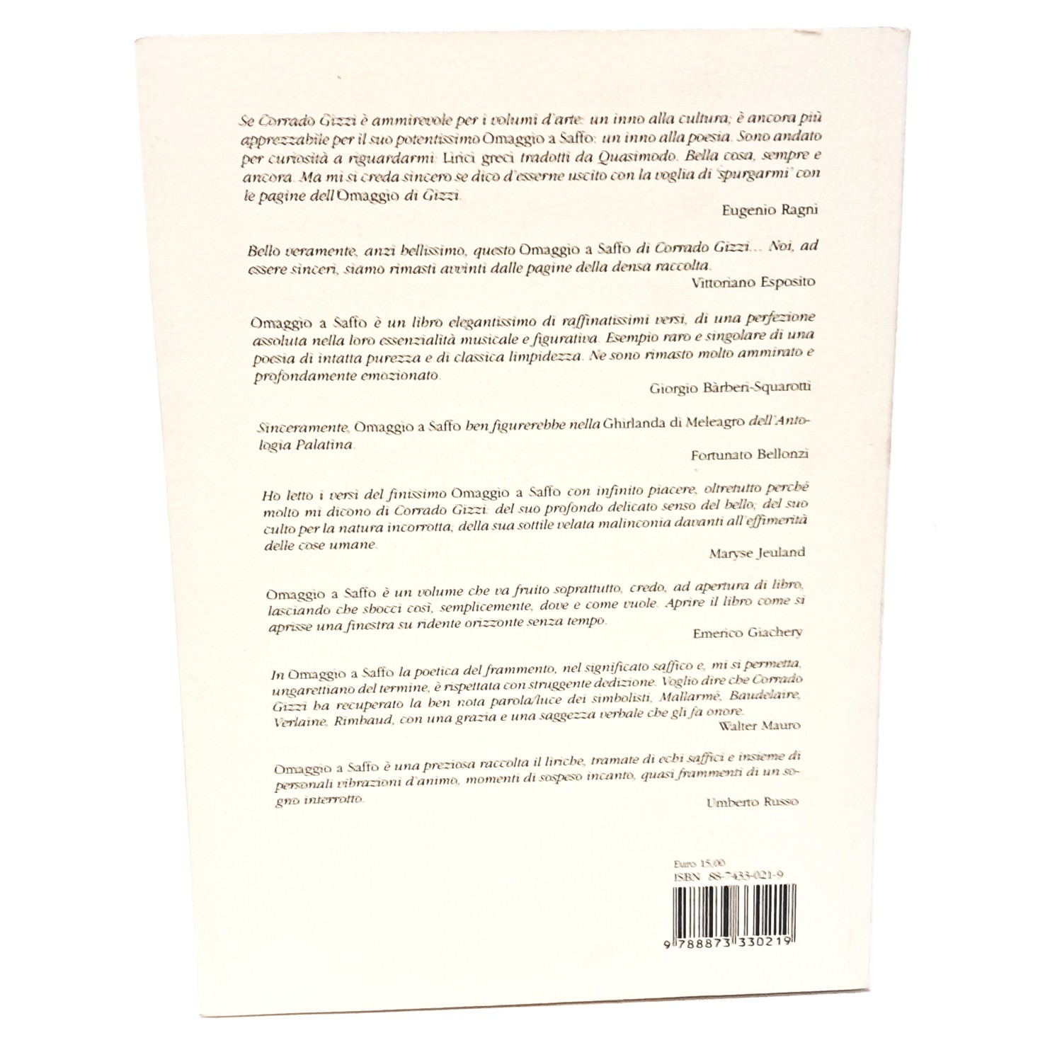 Il prof. Gizzi, notissimo quale docente di chimica e autore di numerose pubblicazioni sia in campo scientifico che letterario e, come sottolinea il prof. Antonio Sorella nella sua prestigiosa prefazione, la sua scrittura poetica, nella sua liricità, recupera gli elementi migliori della tradizione letteraria sviluppandoli in chiave personale e offrendo al lettore un testo di grande qualità stilistica ma anche di notevole scorrevolezza. In questo modo l’Autore recupera alla poesia anche un’attenzione culturale molto vasta e non solo quella del cultore e dello specialista di poesia contemporanea.