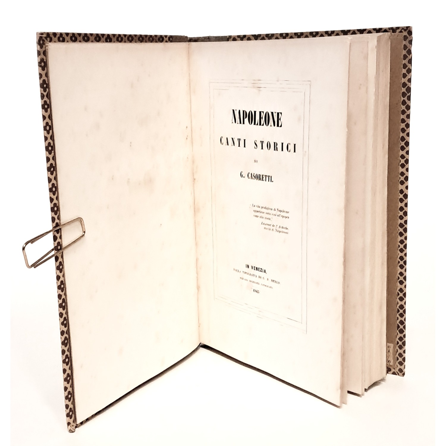 Copertina cartonata rifatta. Pp. 210. Fioriture.