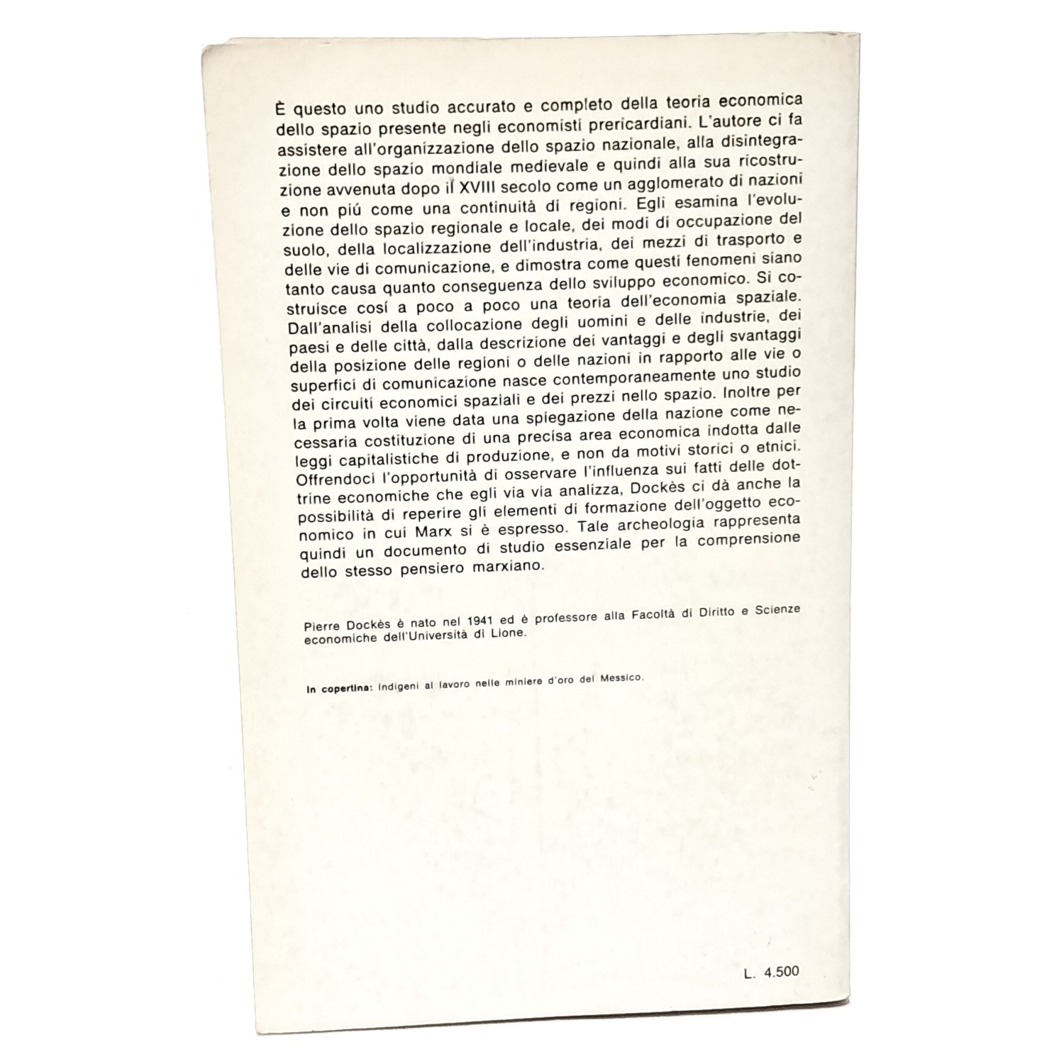 Studio accurato e completo della teoria economica dello spazio presente negli economisti prericardiani. Il volume mette chiaramente in luce un aspetto fino ad ora sorprendentemente trascurato dalla storia delle teorie economiche, vale a dire la frattura esistente tra i testi economici che vanno fino al XVIII secolo, e quelli posteriori. L'autore ci fa quindi assistere all'organizzazione dello spazio nazionale, alla disintegrazione dello spazio medievale e quindi alla sua ricostruzione avvenuta dopo il XVIII secolo come una agglomerato di nazioni e non più come una continuità di regioni.