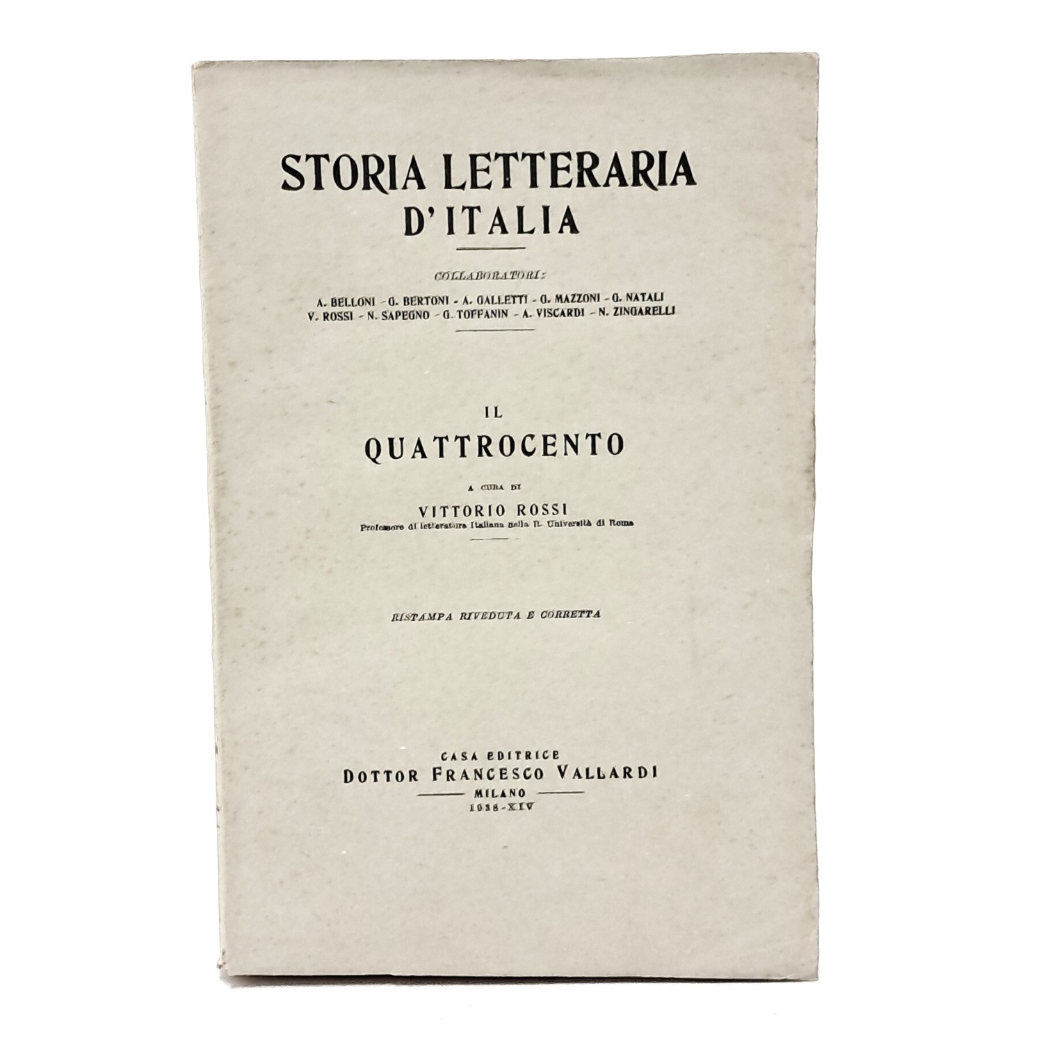 AA. VV.Ristampa riveduta e corretta. Storia letteraria d'Italia.
