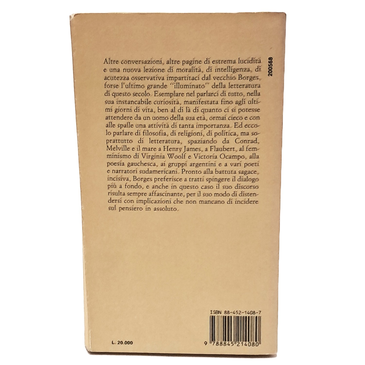 In queste "Altre conversazioni con Osvaldo Ferrari" Borges parla di filosofia, di religioni, di politica, ma soprattutto di letteratura, spaziando da Conrad, Melville e il mare a Henry James, a Flaubert, al femminismo di Virginia Woolf e Victoria Ocampo, alla poesia gauchesca, ai gruppi argentini e a vari poeti e narratori sudamericani. Pronto alla battuta sagace, incisiva, Borges preferisce a tratti spingere il dialogo più a fondo, e anche in questo caso il suo discorso risulta sempre affascinante, per il suo modo di distendersi con implicazioni che non mancano di incidere sul pensiero in assoluto.