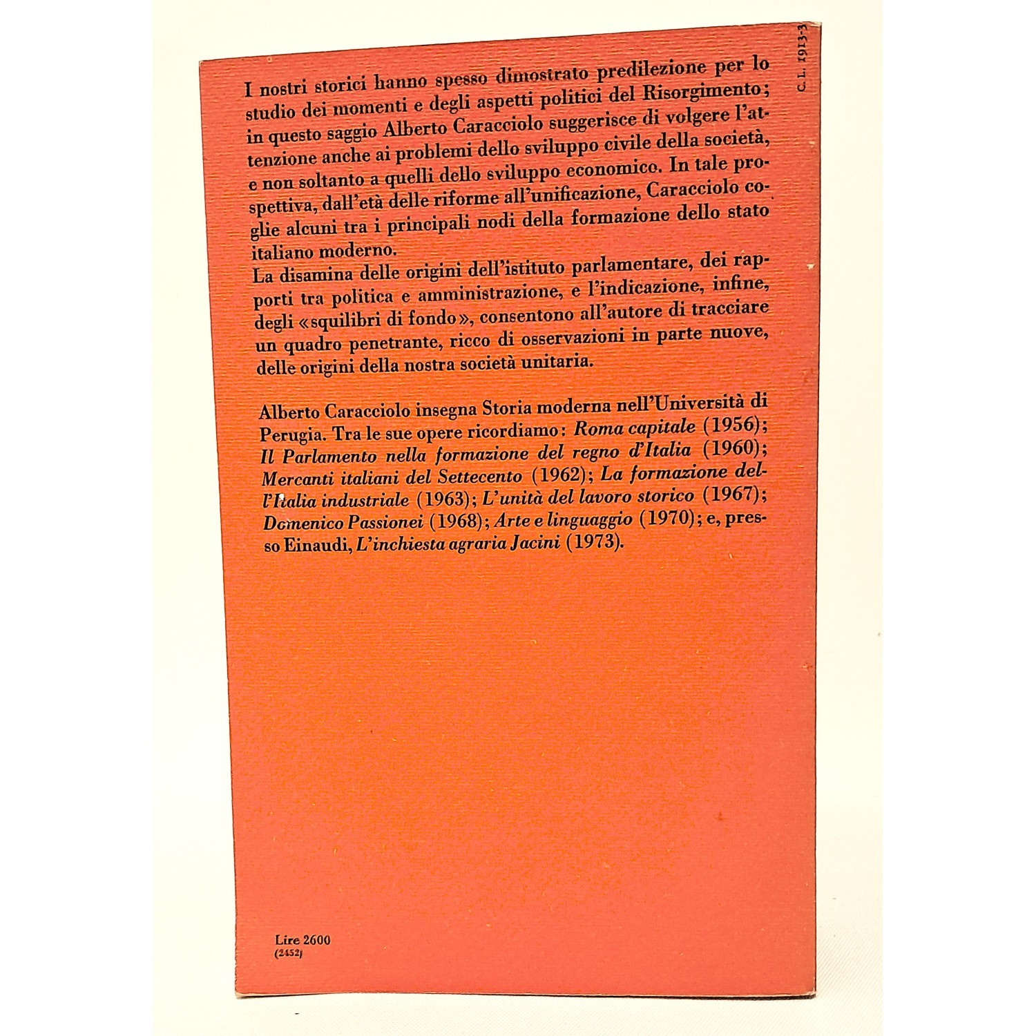 I nostri storici hanno spesso dimostrato predilezione per lo studio dei momenti e degli aspetti politici del Risorgimento; in questo saggio Caracciolo suggerisce di volgere l'attenzione anche ai problemi dello sviluppo civile della società, e non soltanto a quelli dello sviluppo economico. In tale prospettiva, dall'età delle riforme all'unificazione, l'autore coglie alcuni tra i principali nodi della formazione dello stato italiano moderno. La disamina delle origini dell'istituto parlamentare, dei rapporti tra politica e amministrazione, e l'indicazione, infine, degli squilibri di fondo, consentono all'autore di tracciare un quadro penetrante, ricco di osservazioni in parte nuove, delle origini della nostra società unitaria.