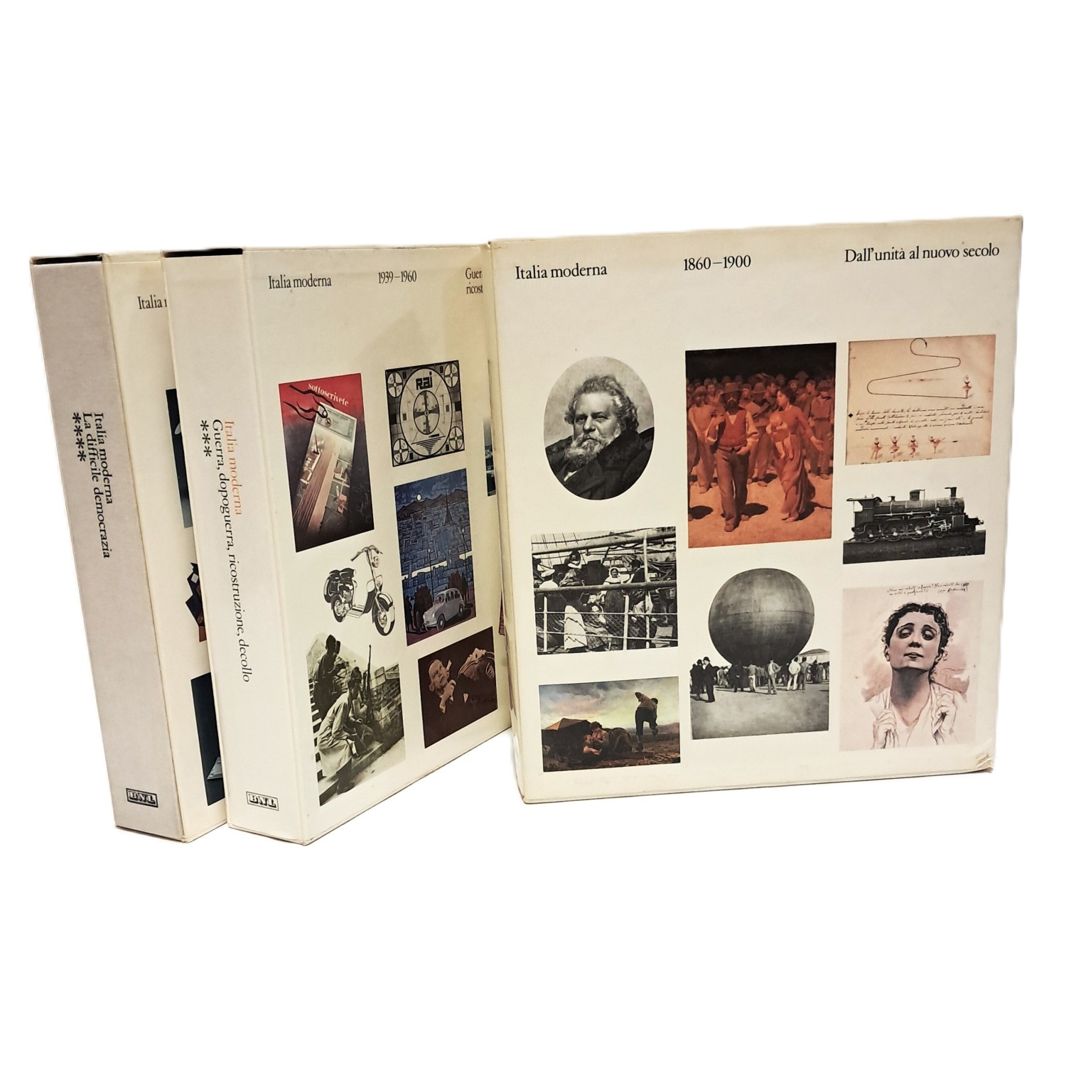PRIMA EDIZIONE edita a cura della Banca Nazionale del Lavoro, diretta da Carlo Pirovano; in quattro volumi divisi per anni: Dall'Unità al nuovo secolo 1860-1900 (I); Dall'espansione alla seconda guerra mondiale 1900-1939 (II); Guerra, dopoguerra, ricostruzione, decollo 1939-1960 (III); La difficile democrazia 1960-1980 (IV)