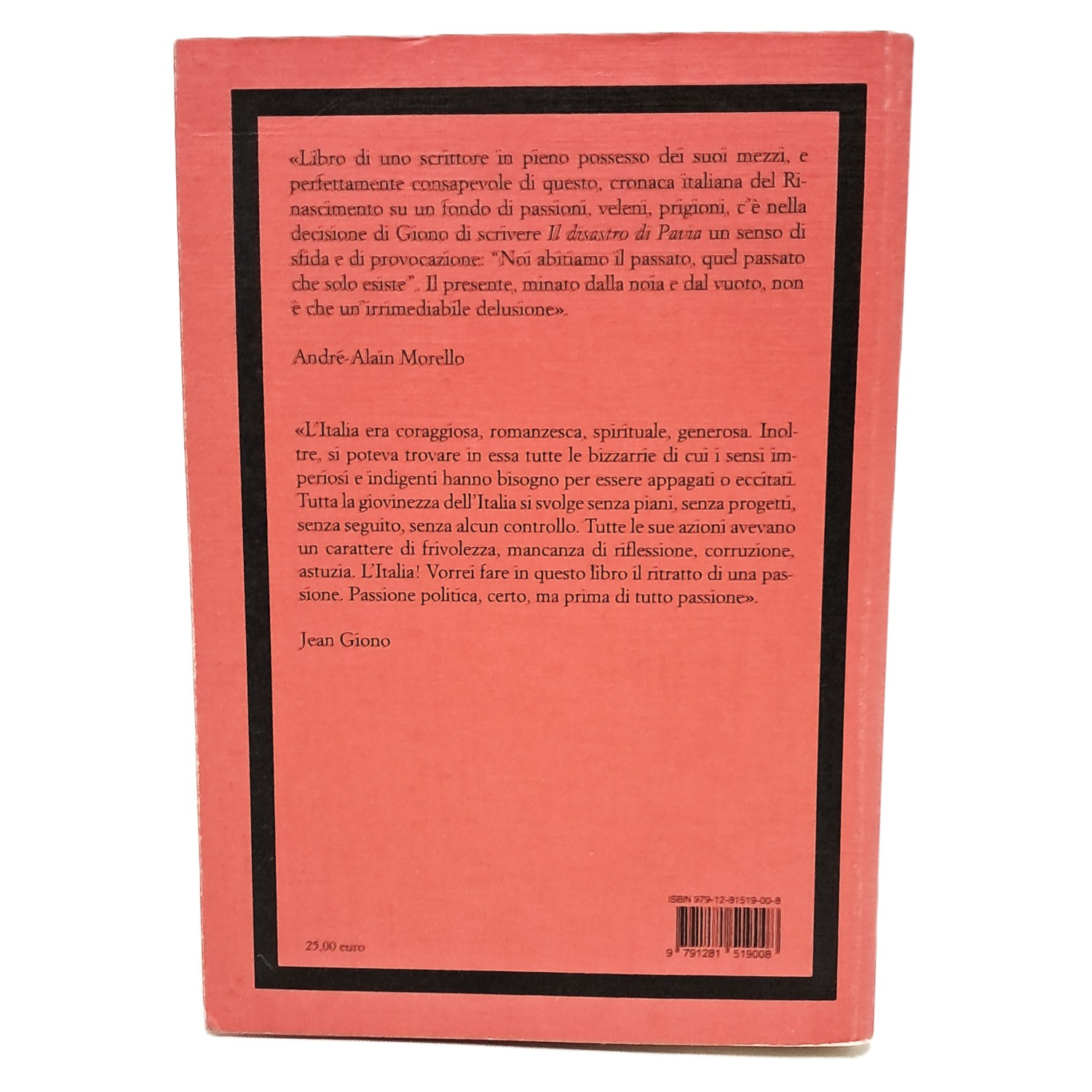Lo scontro tra Francesco I re di Francia e l'imperatore Carlo V, delineato da Giono come il definitivo tramonto di un mondo ancora cavalleresco e il venire alla ribalta dell'età moderna con il suo corteo di masse che si preparano a invadere la scena e di distruzioni di massa, di calcoli politici e di guerre di religione, di nuove classi sociali e di stati assoluti.