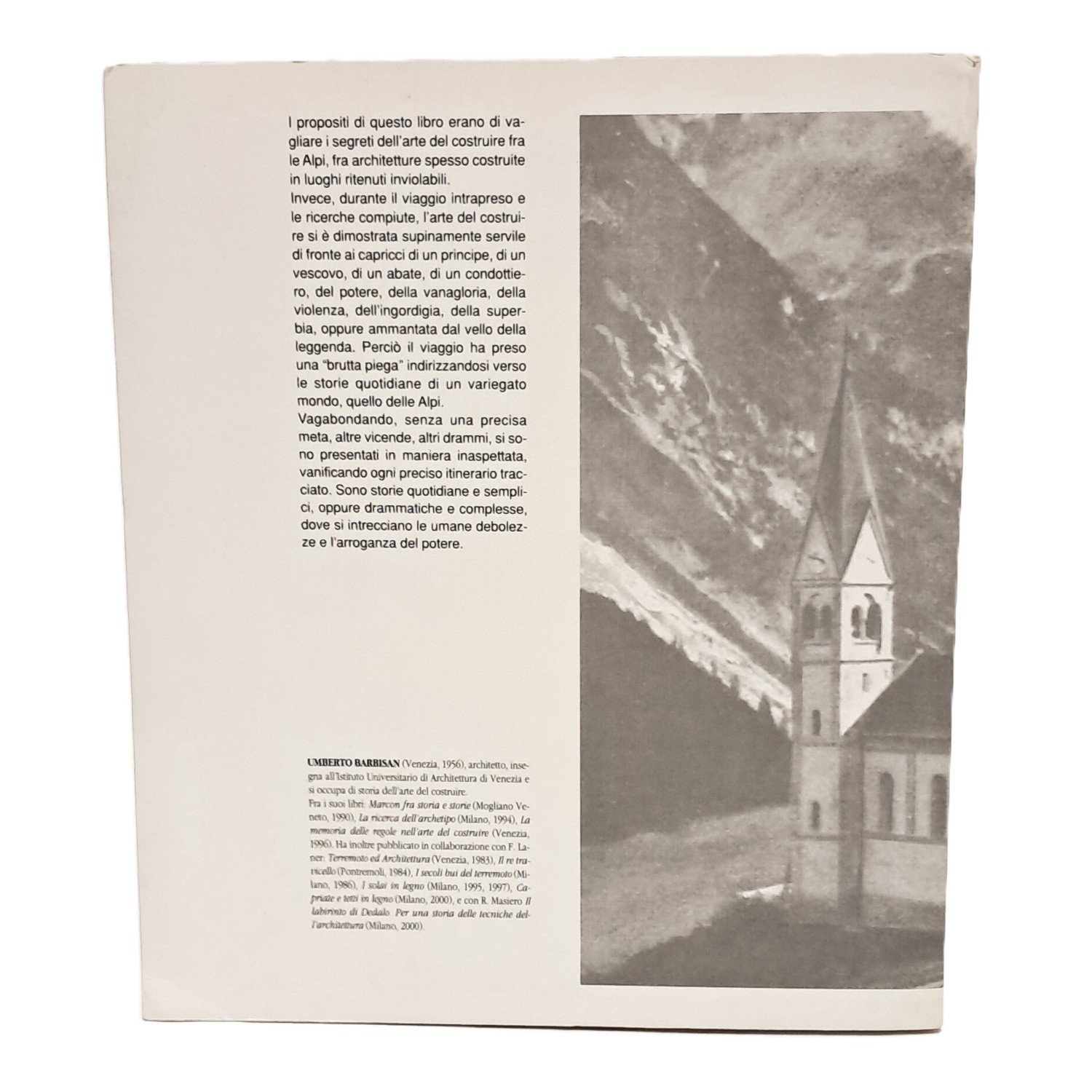 Il volume aveva lo scopo di vagliare i segreti dell'arte di costruire fra le Alpi, fra architetture spesso costruite in luoghi ritenuti inviolabili. In realtà, il viaggio intrapreso e le ricerche compiuta hanno portato alla scoperta di un'arte supinamente servile nei confronti del potere, della violenza, della ingordigia e superbia. L'itinerario ha quindi preso l'aspetto di un vagabondaggio tra vicende e drammi dove si intrecciano le umane debolezze e l'arroganza del potere.