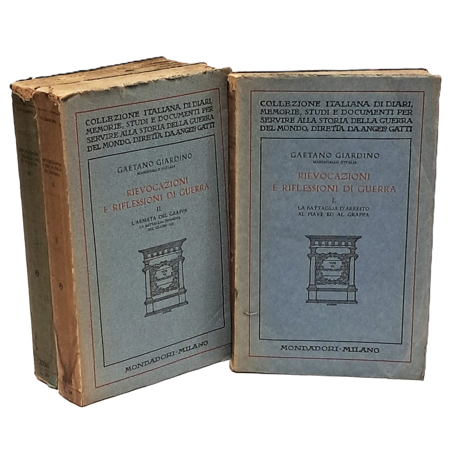 PRIMA EDIZIONE collezione Angelo Gatti diari, memorie e documenti per servire alla storia della guerra del mondo. Opera in tre volumi: I. La battaglia d'arresto al Piave e al Grappa (10 novembre - 15 dicembre 1918); II. L'armata del Grappa la battaglia difensiva del giugno 1918; III. L'armata del Grappa la battaglia offensiva dell'ottobre 1918
