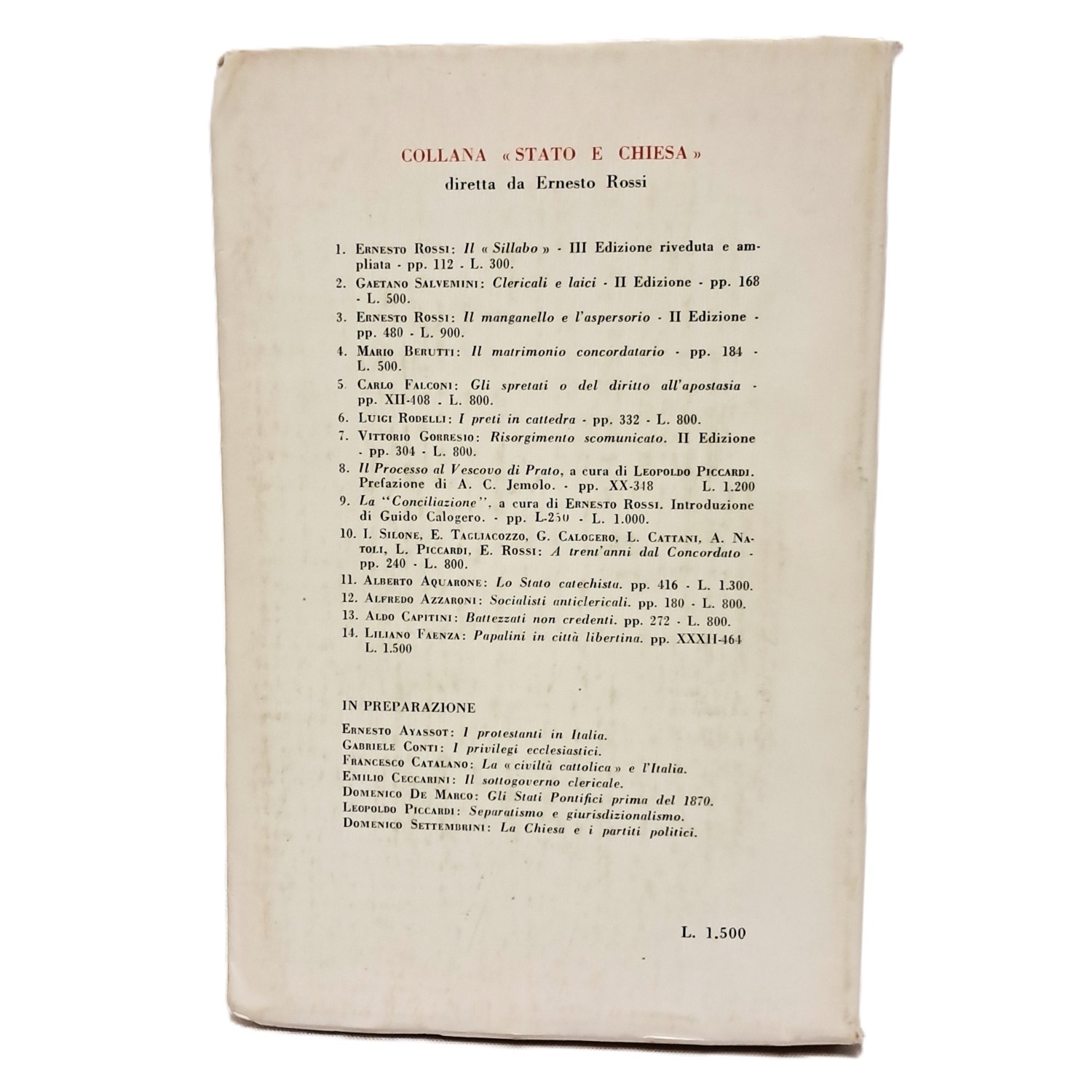 PRIMA EDIZIONE, collana Stato e Chiesa con prefazione di Carlo Falconi