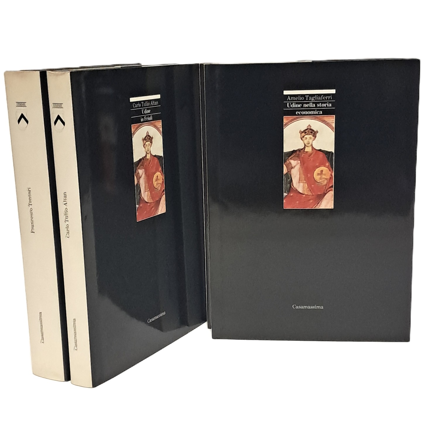 PRIMA EDIZIONE, edita in occasione del millenario della città di Udine, il 1983, cofanetto che contiene cinque volumi: Francesco Tentori, Udine: mille anni di sviluppo urbano; Tullio Altan Carlo, Udine in Friuli; Gioseffi Decio, Udine: le arti; Francescato Giuseppe, Udine: la lingua; Tagliaferri Amelio, Udine nella storia economica.